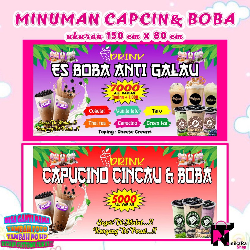 Detail produk dari spanduk, banner jualan minuman cappucino cincau, capcin, minuman viral keren.